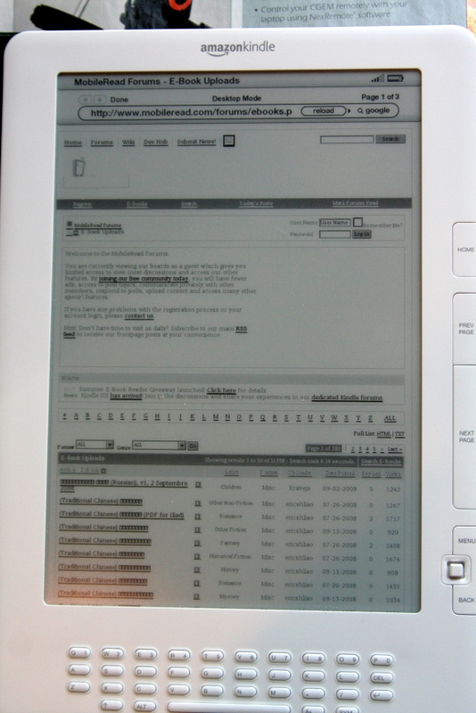 Surfin' MobileRead on Kindle 2 Screen Grabs |