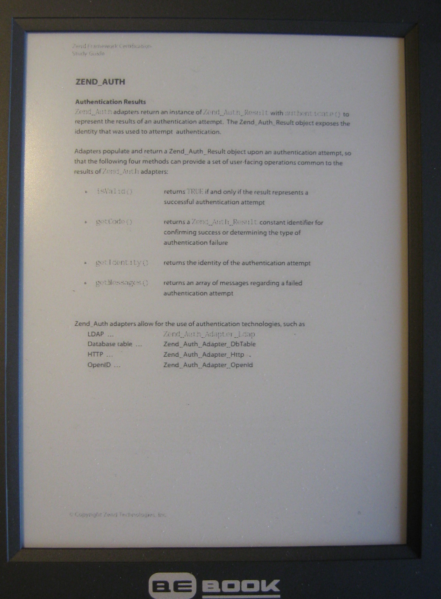 I would really appreciate anyone's help. I am about to start studies in Zend Framework and i would need to know how Zend's PDF on the topic is readable in BeBook: