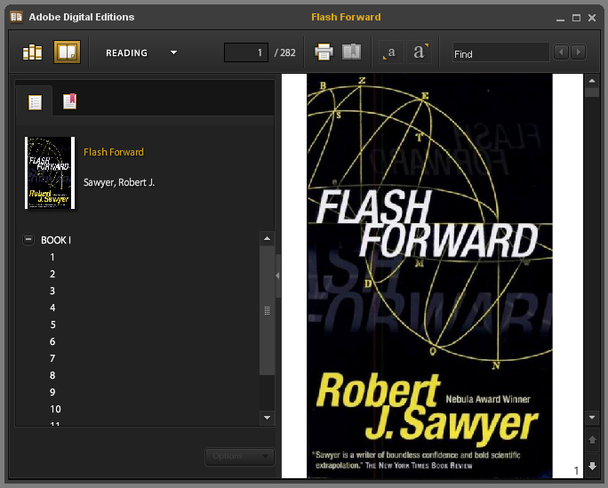 It's Flashforward, this months bookclub book. However it's an ePub I made myself, from a Mobi file, using Calibre and Sigil. Maybe I made it wrong somehow? I'm still pretty new to doing ePubs.