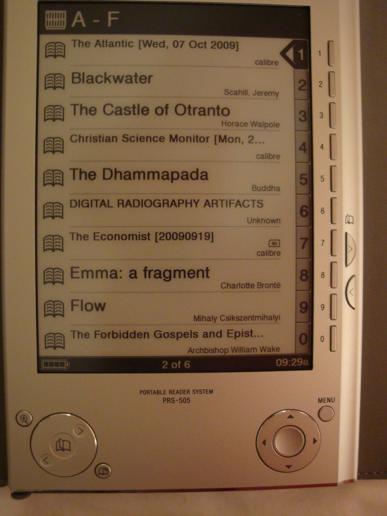 I’ve been lurking here for a while and find myself almost ready to “pull the trigger” on a purchase (well, on a very pointed, specific addition to my Christmas wish list). But I have a few questions. I’ve looked around here quite a bit, but honestly a lot of the threads (both questions and responses) are wayyy over my head. The terminology and issues are just too unfamiliar. When responding, please be patient with me and use very, very small words. Right now, in my naivite, I’m leaning toward one of the Sony Touch versions (Touch or upcoming Daily) or the rumored upcoming smaller Irex. I like the idea of the larger-format Irex devices, but the price is too rich for my blood. I like the large format of the Kindle DX, but I think there are too many hoops to jump to get it to do what I want (plus I think the button keyboard is dorky). I’ve been lurking long enough that I don’t have a lot of faith that the rumored Plastic Logic device will ever actually hit the market, and would rather go with a company with a track record anyway. And before anybody comments that I might be better off with a touchscreen “netbook”, I have one of those (a Fujitsu p1510D). It’s too heavy, too hot, and the battery life isn’t long enough for what I want it to do in this direction. Not to mention the eyestrain issues.