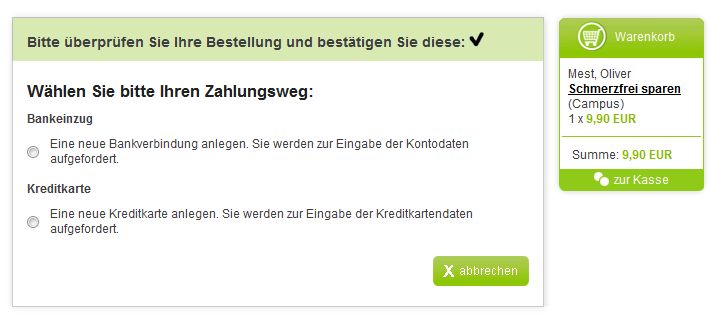 Ist schon witzig - in der Bestellübersicht steht dann 0,00 €, im Warenkorb nebendran noch immer 9,90 €. ;-)