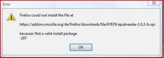 It installed OK for me, but I can't get it to display an ePub, when I try and open one Firefox keeps trying to download it instead.