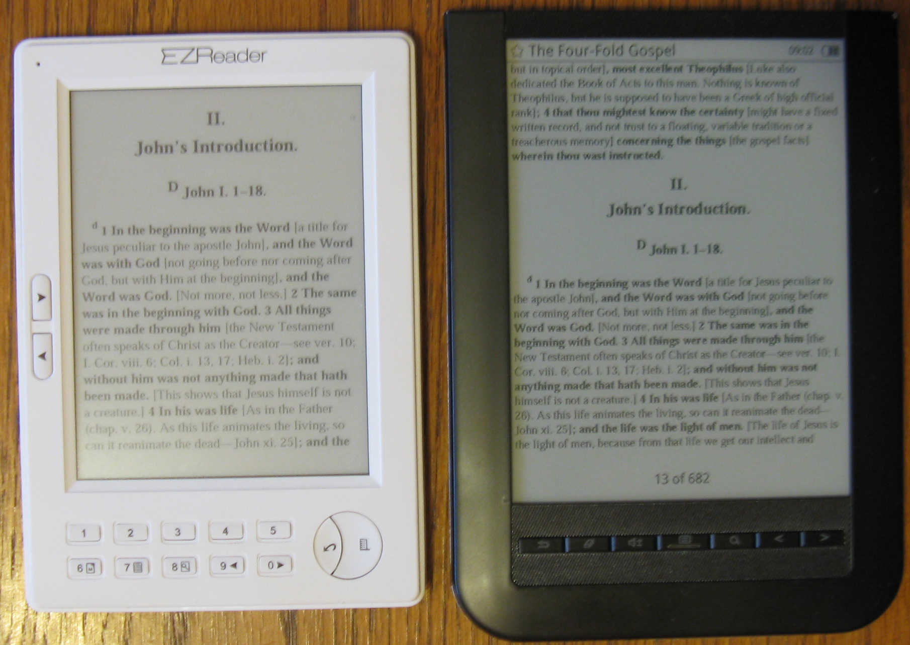 Here, try this comparison. The one on the right is a capacative touch screen using SiPix 6" like the above against an EZREader 5" screen.