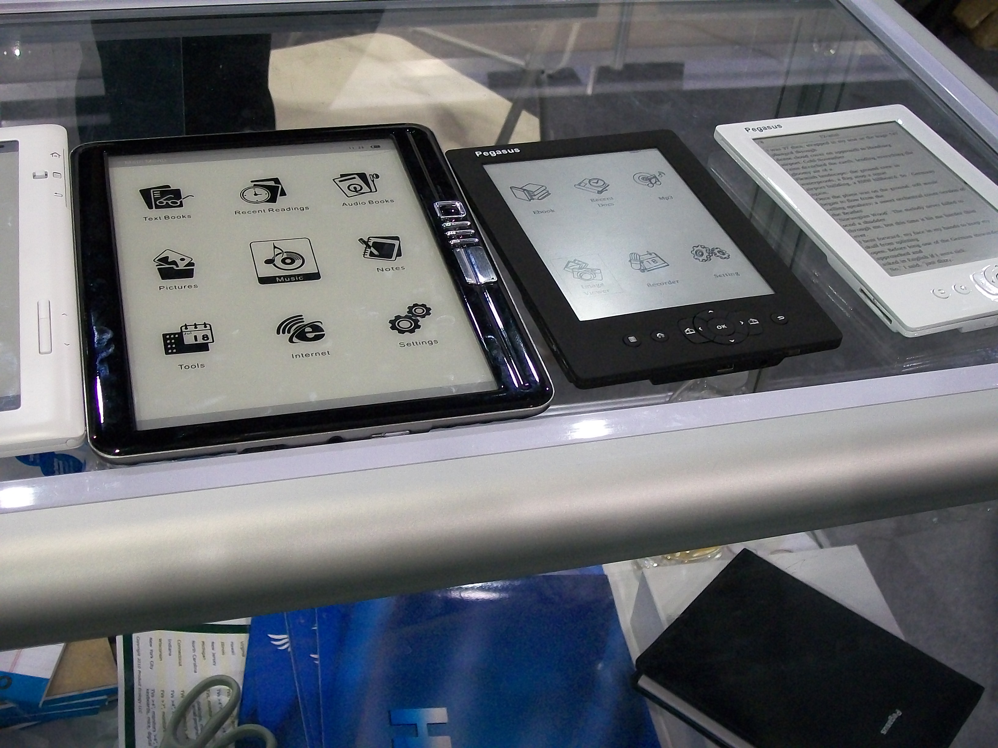 They brought 1 working unit as well as several mock ups of 6" and 9.7" units that are currently under development. There is a variety of models with and without touchscreen and Wifi. I gathered from my conversation that they're still developing the firmware. We discussed the benefits of Foxit vs Adobe in terms of PDF abilities; I tried to talk them into adding FBReader as well. If you look in the last photo you'll see the working model. They're planning to have it ready by the end of Q1 2010, and I was told that the expected price was $199. There is a website for a US based subsidiary, but the site isn't up yet. |