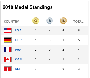 Here's the medal count thus far (just the top 5).