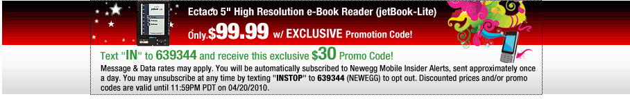 | NEWEGG DailyDeal - jetBook-Lite for $99.99 | Kris777 | Ectaco jetBook | 2 | 06-06-2010 12:49 AM |