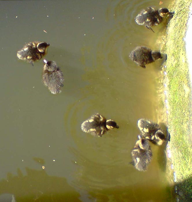 à peine gros comme ma main (et elle est pas très grande ma main), nageant tous ensemble à touche-touche avec leur mère et le papa pas loin, rhââââââ issont trop CHOUS !!!!! |