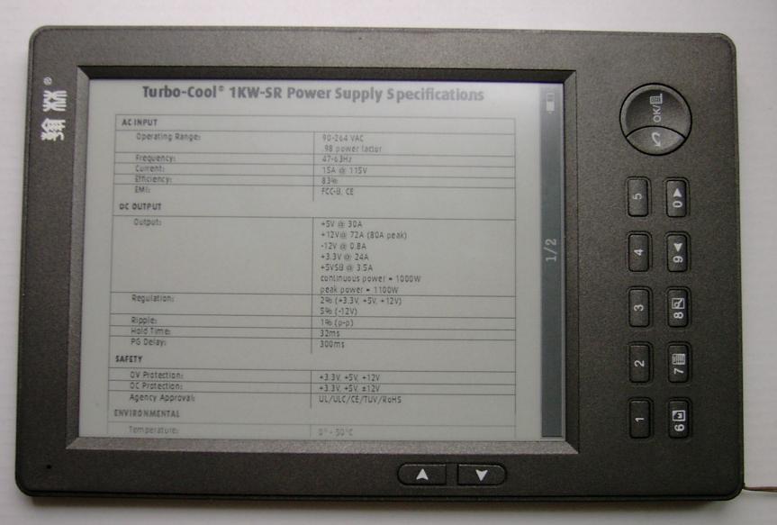 The pictures taken of the power supply manual look pretty nice. Do you have any manga PDF's you can throw on there to give us an idea of how well it renders those? Guess they didn't go for any DRM-type of formats, so you'll have to get your books in HTML, PDF, or text format (not that this is bad or anything, thought it might keep prospective publishers to their device away). It has a comparable price to the Sony too.