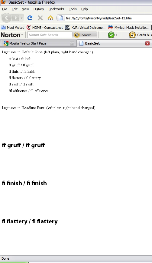 Clipboard01.jpg - a picture in firefox showing the top of that source with the ligatures properly in the correct fonts, Minion Pro and MyriadPro-BlackSemiExt.