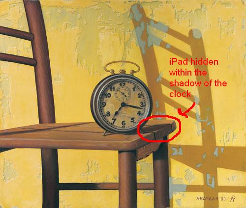 I've been searching the pictures for the iPad, like a Where's Waldo thing... but am having no luck...