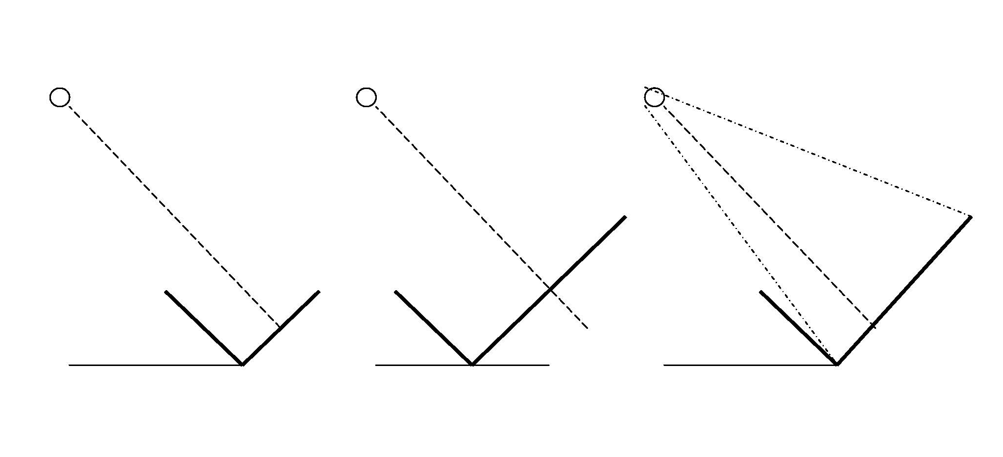 First picture to the left is a setup with camera lens at 90 degrees to the book page placed in the v-cradle. The middle picture shows that moving the v-cradle closer to the lens helps to maintain 90 degrees angle for pages of bigger sizes. The zoom in the camera has to be adjusted accordingly. The last picture shows what happens when the distance between the cradle and the lens stays the same despite a bigger page size. The distances between upper and lower parts of the page and the lens differ considerably, which causes a trapezoidal effect. Not shown in the pictures but an obvious solution for bigger pages is to change the lens angle in order to keep the focus in the middle of the page. But when the lens angle changes then it is no longer 90 degrees to the page. That is why you can change the inclination of v-cradle panels. |