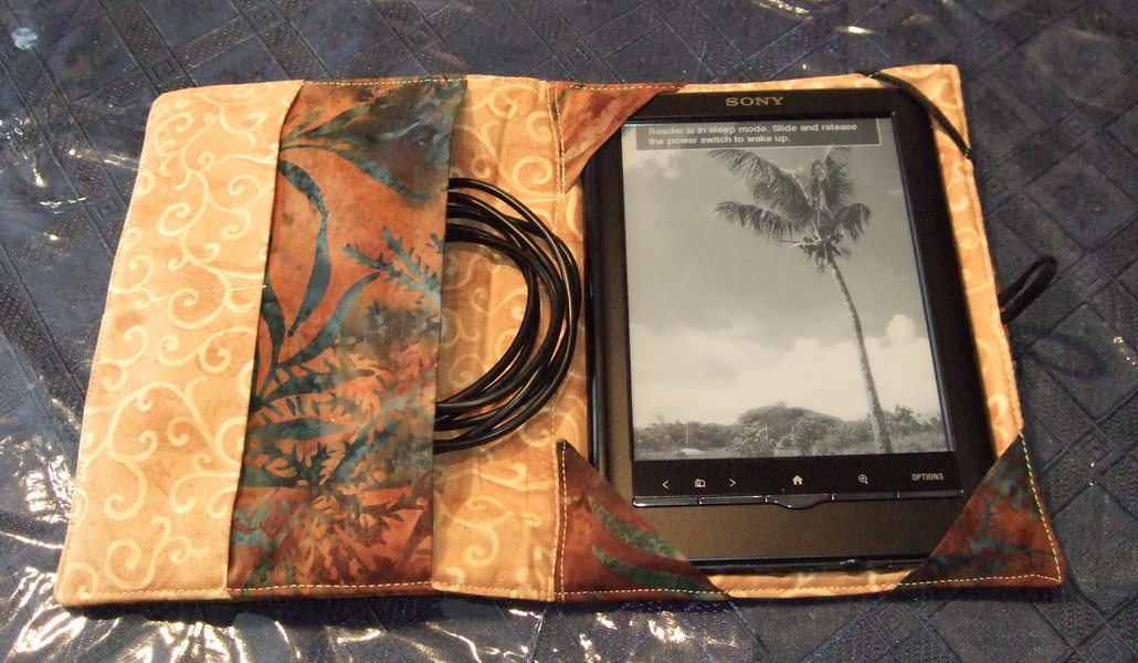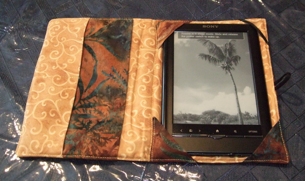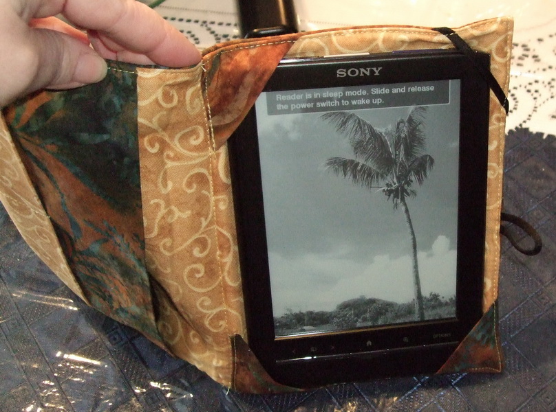 I bought an ereader cover sewing pattern for the Nook/Kindle, and with a few modifications made covers for my New PRS-650 and a friend's PRS-600 (I had to make mine a bit smaller than hers.)