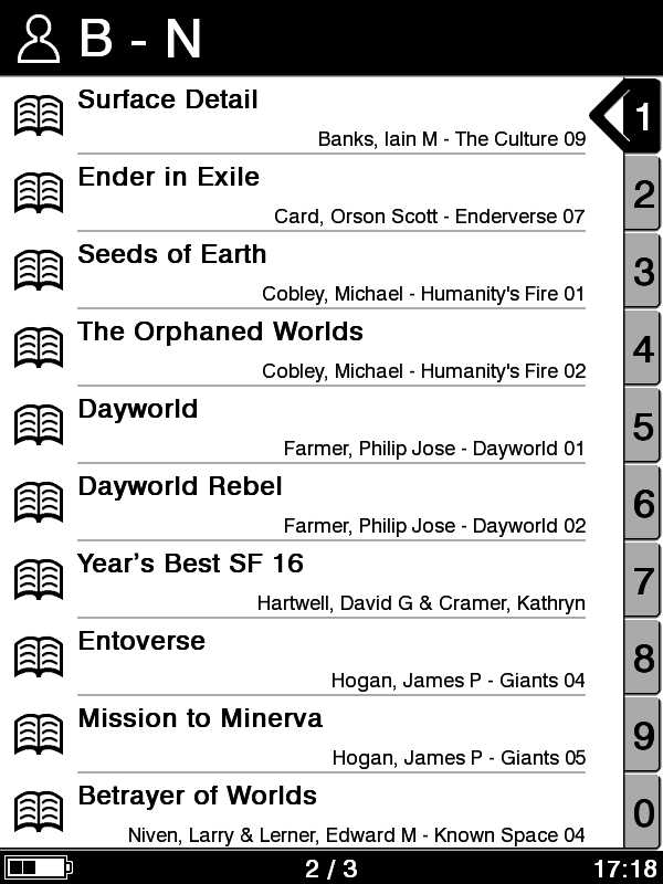 sorted as: author>Series>series number>title The Fellowship of the Ring Tolkien, JRR - Lord of the Rings 01 The Two Towers Tolkien, JRR - Lord of the Rings 02 The Return of the King Tolkien, JRR - Lord of the Rings 03 The Hobbit Tolkien, JRR |