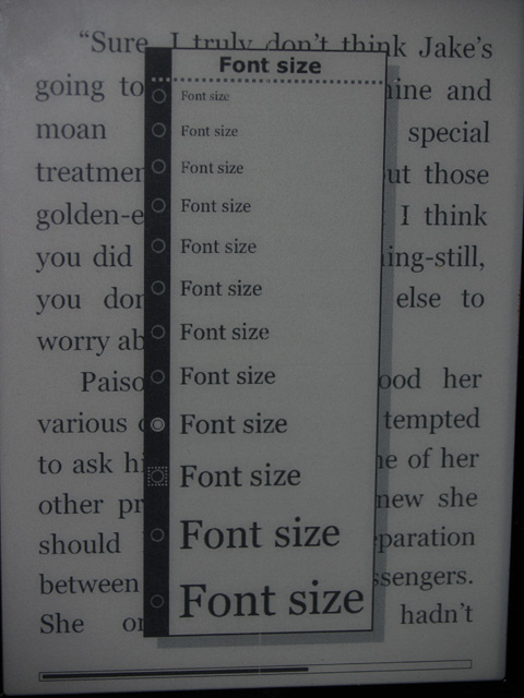 What are the choices for font size? It has always seemed to me that a big advantage to an ebook reader is the ability to increase the font size. Are there limited options like the Sony(small, medium, large), or can you specify the actual font size?