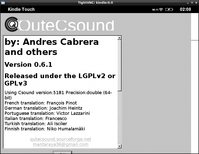![]() with "some" visual X output. and "some" flaky audio output. EDIT: Actually: root@kindle:~# csound -+rtaudio=alsa -d --sched -o dac ./simple.csd Quote: