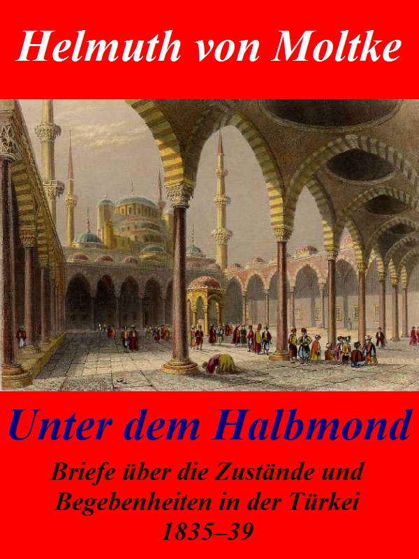 Näheres über den Autor, siehe: Wikipedia Unter dem Halbmond. Briefe über die Zustände und Begebenheiten in der Türkei 1835–39. Erstdruck 1841 (gekürzte Fassung; Ed. Erdmann, 1997. E-Text aus Projekt Gutenberg.de) 1835 erhielt er Urlaub für eine Bildungsreise in den Südosten Europas. Auf Wunsch des Sultans des Osmanischen Reiches wurde er von 1836 bis 1839 als Instrukteur der türkischen Truppen abkommandiert. In dieser Zeit bereiste er Konstantinopel, die Schwarzmeerküste, das Taurusgebirge und die Wüste von Mesopotamien und nahm 1838 an einem Feldzug gegen die Kurden teil. Im April und Mai 1837 begleitete er Sultan Mahmud II. auf dessen Reise in die Donaufürstentümer. Er plante dort die u.a. eine Verteidigungslinie gegen die Russen. Es wurden nach seinen Plänen 4 Festungen entlang der Donau erbaut. Eine davon ist die Festung Silistra.1838 fühlte sich das Osmanische Reich stark genug, den Kampf gegen die ägyptischen Truppen Mehmet Alis unter dessen Sohn Ibrahim Pascha in Syrien wieder aufzunehmen. Moltke beteiligte sich auch an diesem Feldzug und nahm dabei auch an der entscheidenden Schlacht von Nizip am 24. Juni 1839 teil. Die Eindrücke seiner Jahre im Osmanischen Reich hat Moltke in seinem Werk Unter dem Halbmond mit dem Untertitel Briefe über Zustände und Begebenheiten in der Türkei aus den Jahren 1835 bis 1839 aufgezeichnet. Über das untergehende Osmanische Reich, den Kranken Mann am Bosporus, urteilte er: Es ist lange die Aufgabe der abendländischen Heere gewesen, der osmanischen Macht Schranken zu setzen. Heute scheint es die Sorge der europäischen Politik zu sein, ihr das Dasein zu fristen. (aus Wikipedia) This work is assumed to be in the Life+70 public domain OR the copyright holder has given specific permission for distribution. Copyright laws differ throughout the world, and it may still be under copyright in some countries. Before downloading, please check your country's copyright laws. If the book is under copyright in your country, do not download or redistribute this work.
