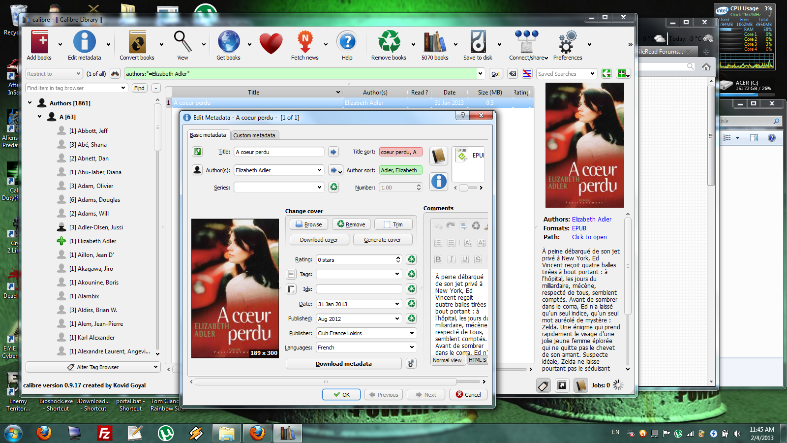 See the picture in attachment. This example shows an author "Elizabeth Adler" in the letter A, and the metadata looks fine. But i'd like to see it sorted like in the author sort field that i see in the metadata. Why isn't it working ? How to correct this, what am i missing ? Thanks for your support |