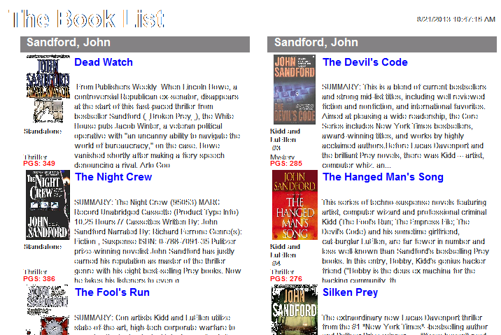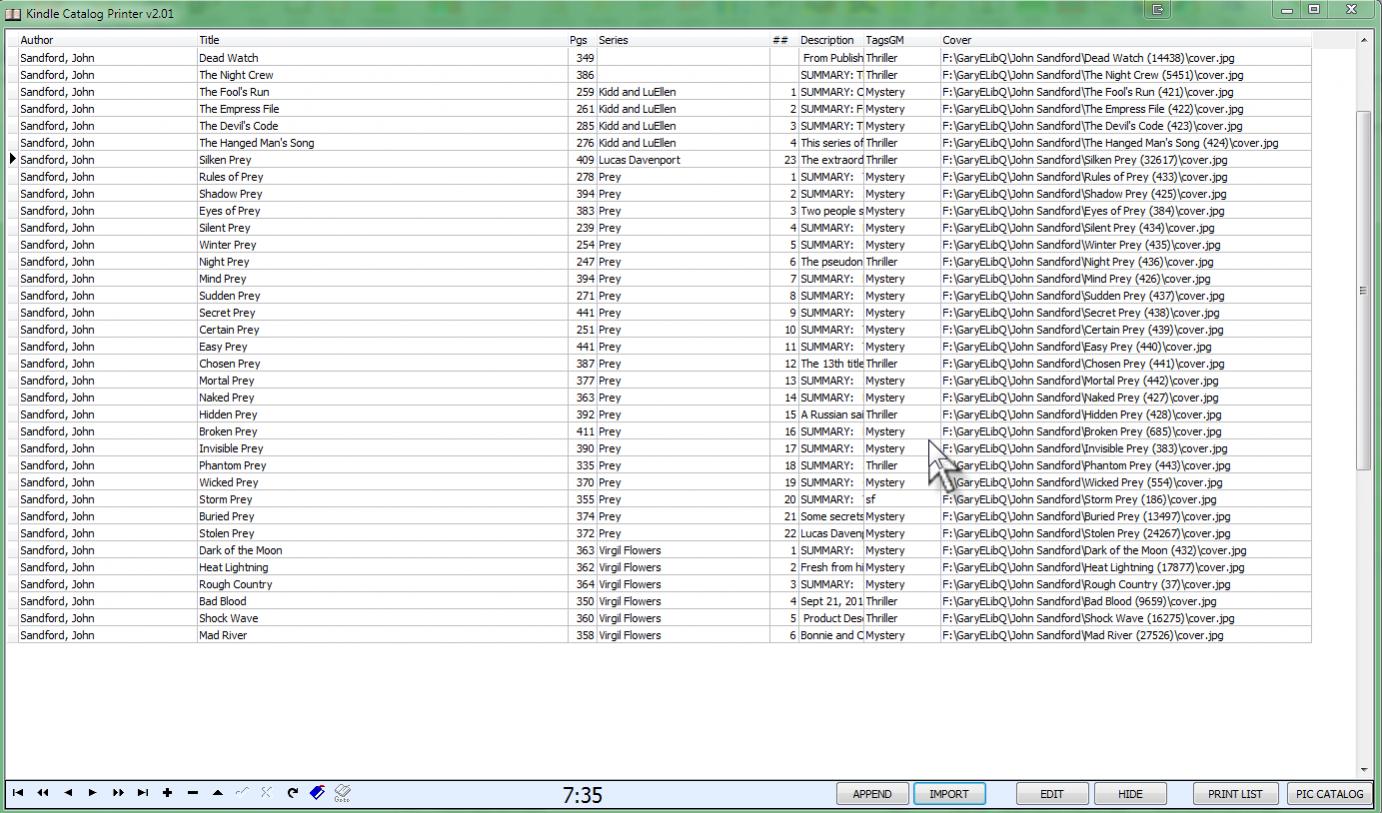 I wrote a formatter for my selected output of a Catalog in CSV format. Right now, it works for me, so it doesn't matter that the backend requires a database layer unlikely for many people to have. Nor that they have the same defined columns in Calibre as I do. I am willing to do some extra work on making it more universally usable, if there is interest. It's my attempt to give back to the community. I'm not complaining that there hasn't been any responses through the first week. If that continues to be the case, then I'm okay with using what I have already. I will leave the message up here for another month before asking the moderator to remove it, if it proves unwanted. Last edited by Gary_M_Mugford; 08-25-2013 at 07:13 PM. Reason: Appears not to have any traction |