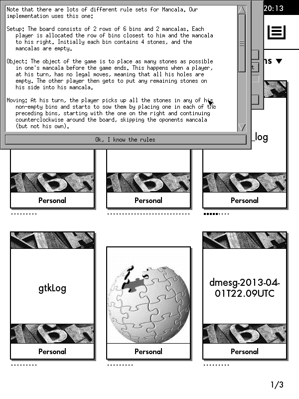 Learning new skills http://xforms-toolkit.org/ I found something to hack on. UPSTREAM http://ftp.de.debian.org/debian/pool....debian.tar.gz mancala basic but fun. Enjoy. Last edited by twobob; 09-29-2013 at 08:51 AM. |
