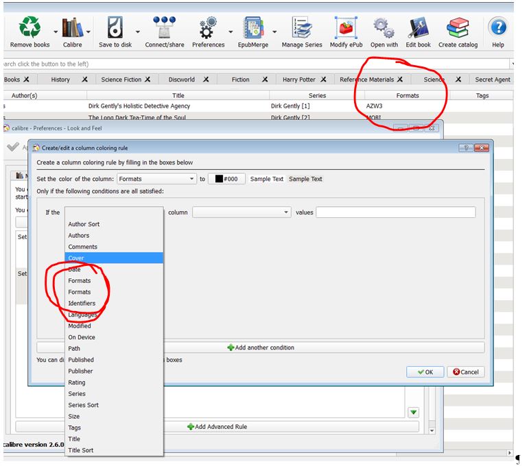 When I go to [Color Columns'] there are 2 choices on the column dropdown labeled [Formats] (Color Columns.jpg) I only have a single Format column as far as I can tell