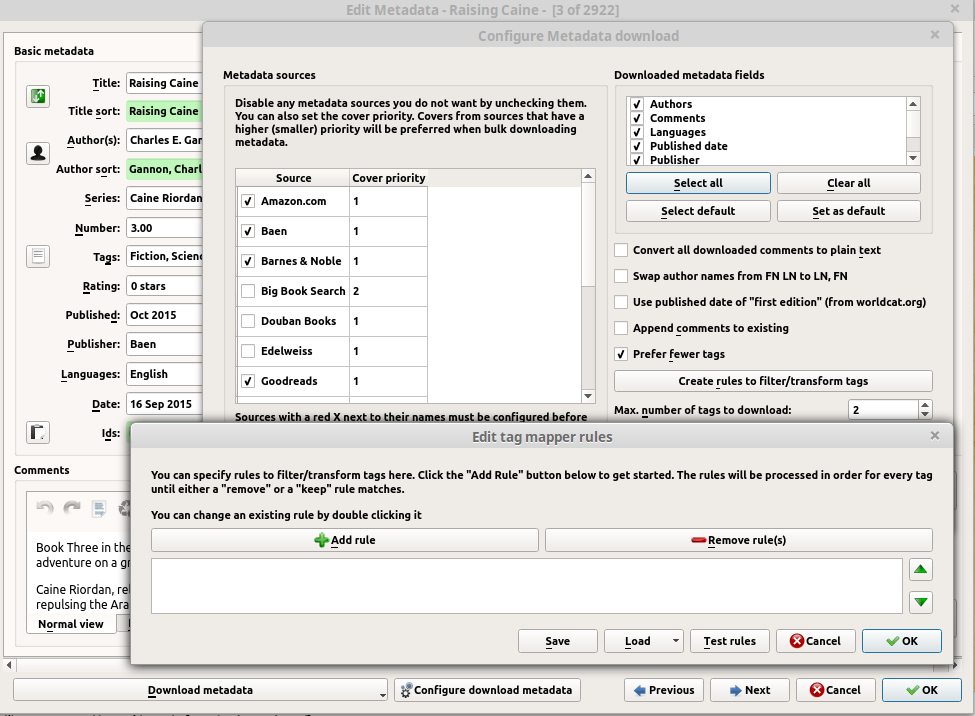 One of the new features is described as follows: Implement tag mapping to automatically filter/transform tags when adding books or downloading metadata Now you can create simple rules that will filter/transform the tags when adding new books or downloading metadata for books. To setup the rules, go to Preferences->Adding books and Preferences->Downloading metadata. Where is Preferences->Adding books and Preferences->Downloading metadata? |