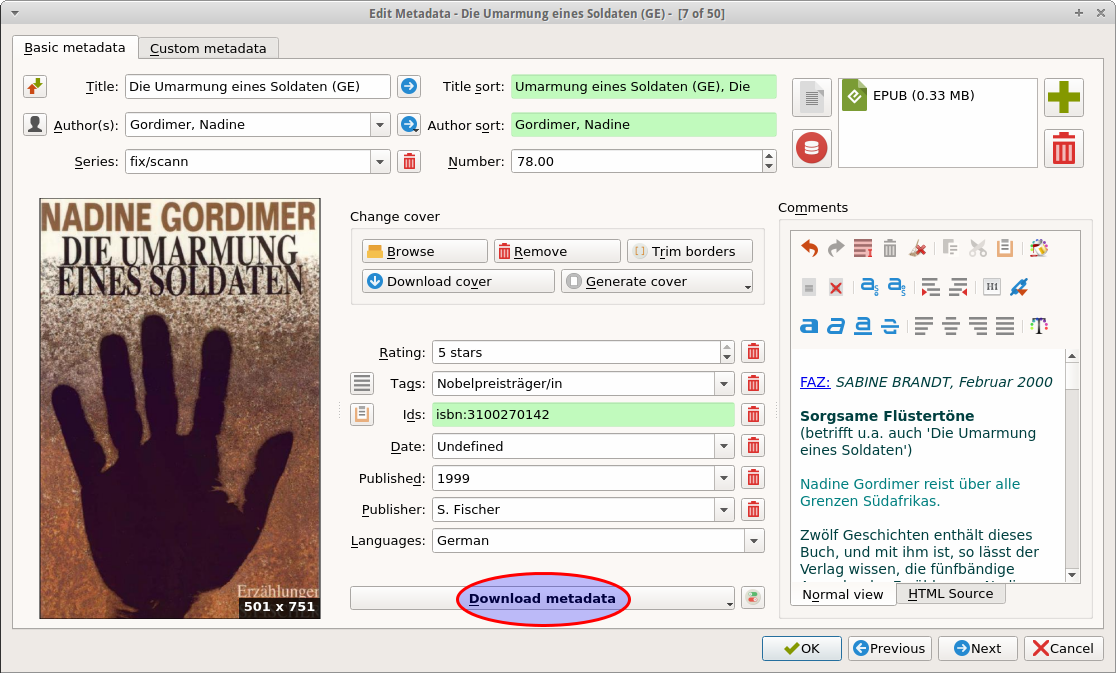 I have already often criticized (here and elsewhere): Inconsistent names. This procedure offers no benefit, however, but may contribute to confusion, especially to those little familiar in the matter. Metadata download Download metadata And the wording: Preferences->Downloading metadata More variations are hardly possible!? Granted, this example is not likely to cause a complete mess. Last edited by chaot; 09-29-2015 at 11:40 AM. |