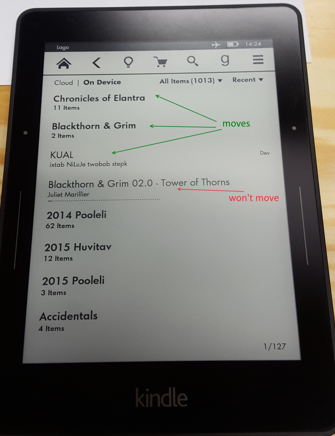 Kindle Voyage 5.6.5 recent sorting broken