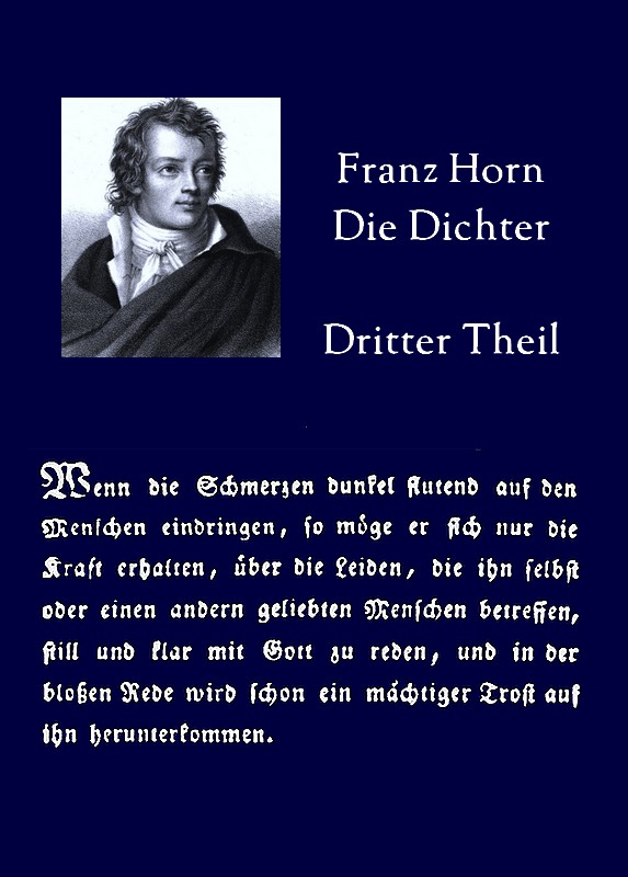 Franz (Christoph) Horn, Die Dichter (3 Bände. Berlin 1817/1818), Erster Theil (=Bd1), 1817, Zweiter Theil (=Bd2), 1817. Dritter und letzter Theil (=Bd3), 1818.