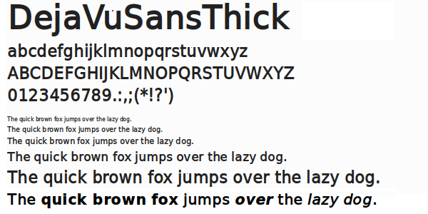 I was in need of a thick sans-serif, so I modified the weight of the DejaVu font (Bitstream and Tavmjong Bah) to quite an amount. Not bold, just very thick.