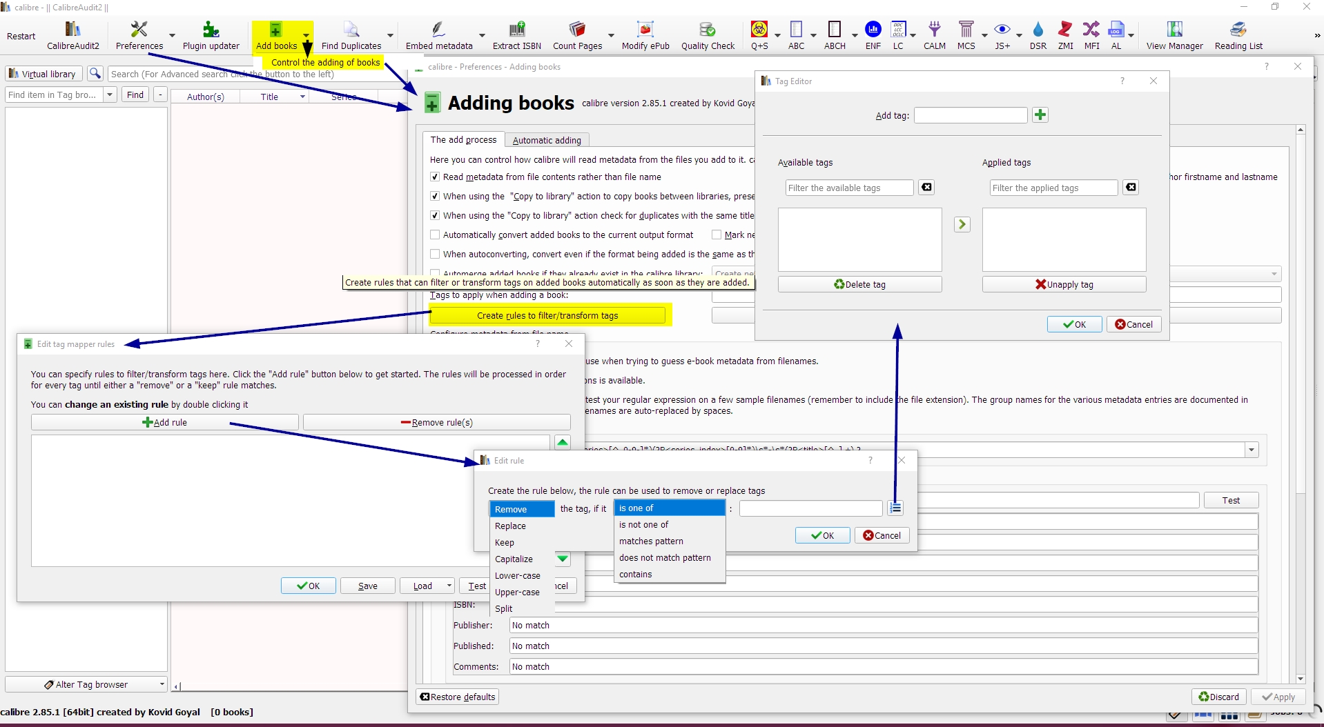 What I did was create a custom Yes/No field in each library, then set up a virtual library to list all books where the value of that column is not Yes. When I add a book, that column defaults to blank, so it automatically shows up in my To Fix virtual library. Once I clean up the metadata, I mark that column as Yes to remove it from To Fix. |