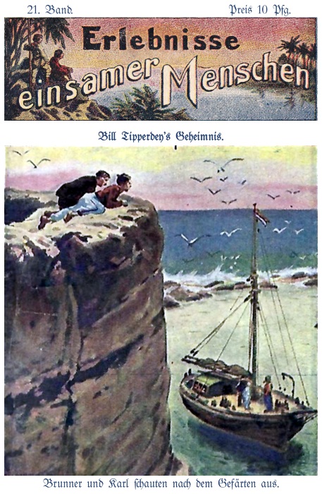 „Möglich, daß andere Euch angelogen haben, – ich spreche die Wahrheit“, erwiderte Bill Tipperdey mit Nachdruck. „Seht Euch doch mal gefälligst meine Papiere durch, die im Bureau dieses verd… Steinkastens von Freiheitsberaubungsanstalt liegen dürften. Da werdet Ihr erkennen, daß ich tatsächlich im Mai des Jahres 1895 für die Bark „Australia“ in Melbourne angemustert worden bin. Und die „Australia“ hatte für gut zwei Millionen Goldbarren im Laderaum, die sie im Auftrage der Ballarat-Gold-Minen-Kompagnie hier nach Singapore bringen sollte. – Das, was ich sage, stimmt alles aufs Tüpfelchen – so wahr ich Bill Tipperdey heiße und mich rühmen kann, der einzige Überlebende des Goldschiffes zu sein. – Ihr zuckt ungläubig die Achseln?! Nun, so geht doch nach dem Hafenamt und laßt Euch die Liste der im Sommer 1895 verschollenen Seefahrzeuge vorlegen. Darunter werdet Ihr auch die „Australia“ finden. Mithin muß wohl was an meinem „Märchen“ daran sein, wie Ihr es zu nennen beliebt.“ Walther Kabel schreibt hier unter dem Pseudonym W. Belka Abenteuergeschichten von Auswanderern und Verschollenen, die sich an junge Erwachsene wenden. Text und Cover stammen von der Walther-Kabel-Seite, vielen Dank nach dort. This work is assumed to be in the Life+70 public domain OR the copyright holder has given specific permission for distribution. Copyright laws differ throughout the world, and it may still be under copyright in some countries. Before downloading, please check your country's copyright laws. If the book is under copyright in your country, do not download or redistribute this work.