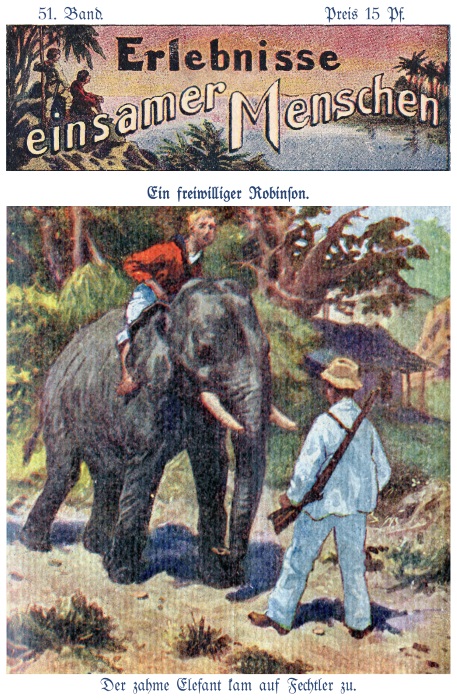 Doktor Merkel bestritt dies, ebenso Karl Fechtler. Ein schwacher Charakter mit unpraktischer Veranlagung würde vielleicht auch bei den sonst günstigsten Lebensbedingungen zugrunde gehen. Aber die weitaus meisten Menschen, von Frauen und Kindern natürlich abgesehen, dürften eine derartige primitive Daseinsführung ganz gut überstehen. Kraxemiller und die drei anderen Herren, besonders der elegante Baron, beharrten jedoch bei ihrer Ansicht. Und letzterer erklärte sogar, ein Leben ohne Zahnbürste und Mundwasser, ohne all das Drum und Dran einer verfeinerten Kultur würde ihn schon in kurzem dem Wahnsinn nahebringen. Worauf der junge Student wieder scherzend erwiderte, wenn ihm jemand 25 000 Mark böte, falls er ein Jahr lang freiwillig Robinson spielen wolle, würde er bereitwilligst zugreifen. Walther Kabel schreibt hier unter dem Pseudonym W. Belka Abenteuergeschichten von Auswanderern und Verschollenen, die sich an junge Erwachsene wenden. Text und Cover stammen von der Walther-Kabel-Seite, vielen Dank nach dort. This work is assumed to be in the Life+70 public domain OR the copyright holder has given specific permission for distribution. Copyright laws differ throughout the world, and it may still be under copyright in some countries. Before downloading, please check your country's copyright laws. If the book is under copyright in your country, do not download or redistribute this work.