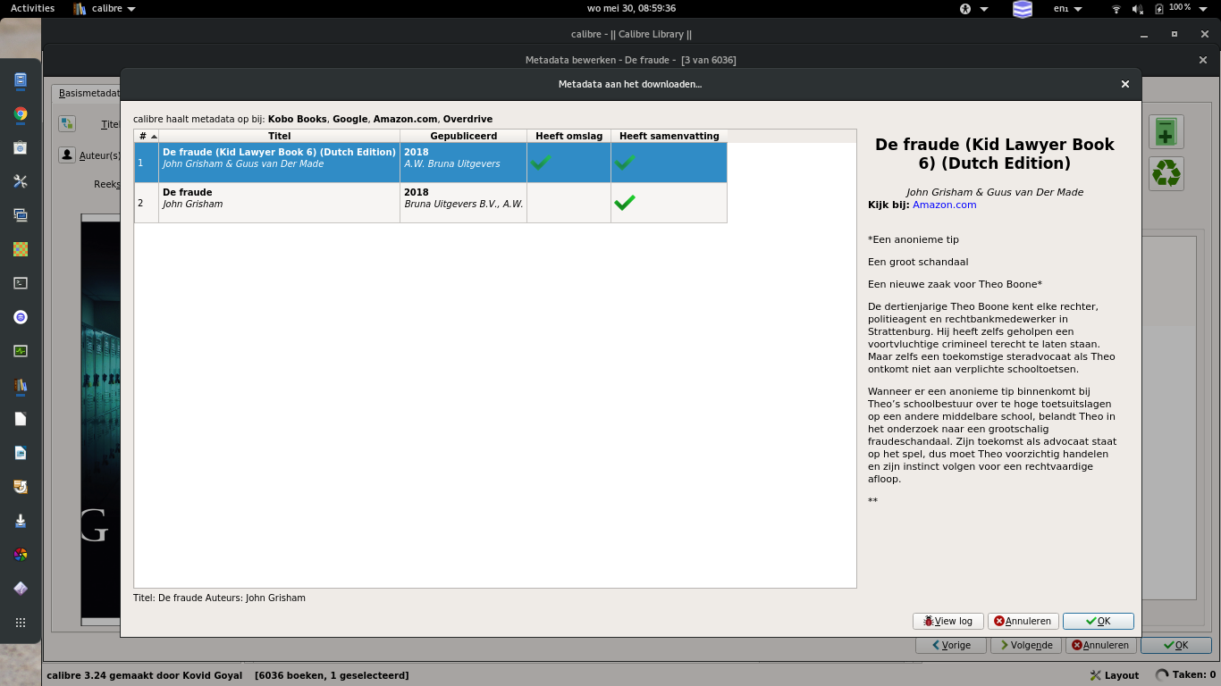 As you can see, I have a book without summary. I edit metadata and click on download metadata. Then I choose the record with a summary. Click on OK and return to my book. In older versions the summary is displayed in the database then. But from version 3.24, the summary screen stays empty.
