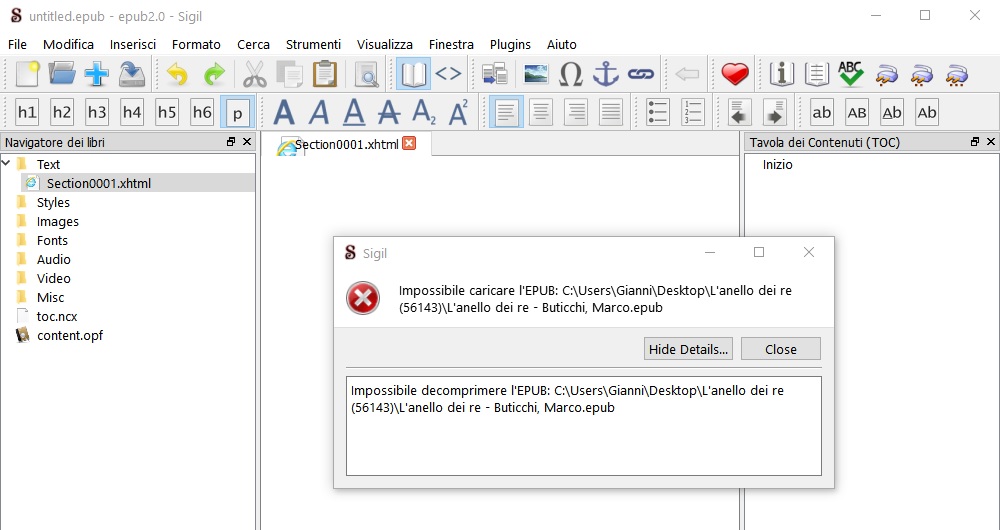 thanks for your answer, I used Winrar, Winzip, Z-Zip trying to open the corrupt files, but none worked. Now I've tried Sigil, but you can see the result from the attached image!!! I would like to ask Kovid and all the developers of this wonderful program if you can modify Calibre so that it does not compress the files but save them in folders, subfolders and so on… Many thanks. Gianni Last edited by gianni_fed; 09-02-2018 at 08:57 AM. |