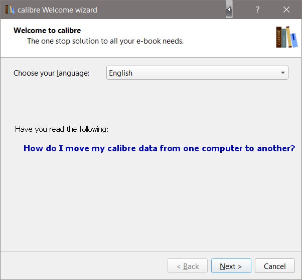 When calibre is first installed it runs the Welcome Wizard. I suggest a prominent link to the 'moving to a new computer' FAQ be included on the Welcome Wizard's window.