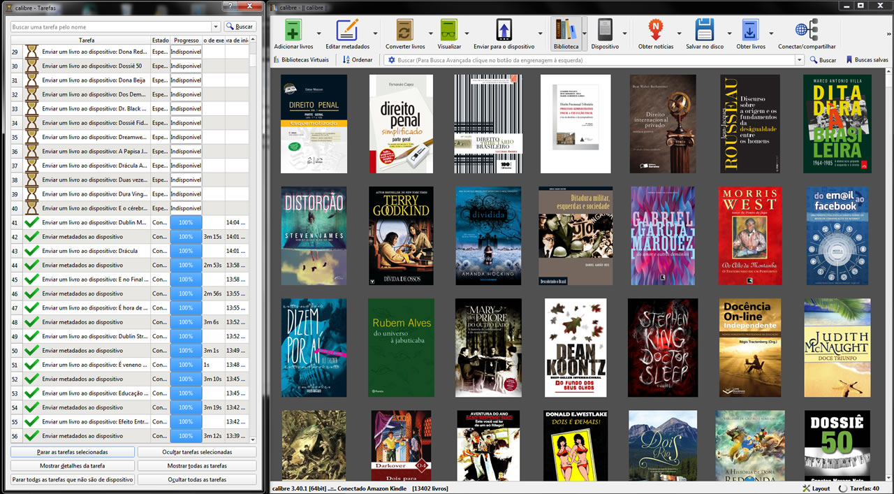 The real problem for me is the multiple tasks to send the books and the metadata. It's sending each book and metadata individually... If I could convert from epub to mobi and send all the books at once and then update the metadata just once it would solve my problem. As it is it's taking 3 minutes to send each book to device, and I'm on the process to send 2.200 books to my kindle 32GB.
