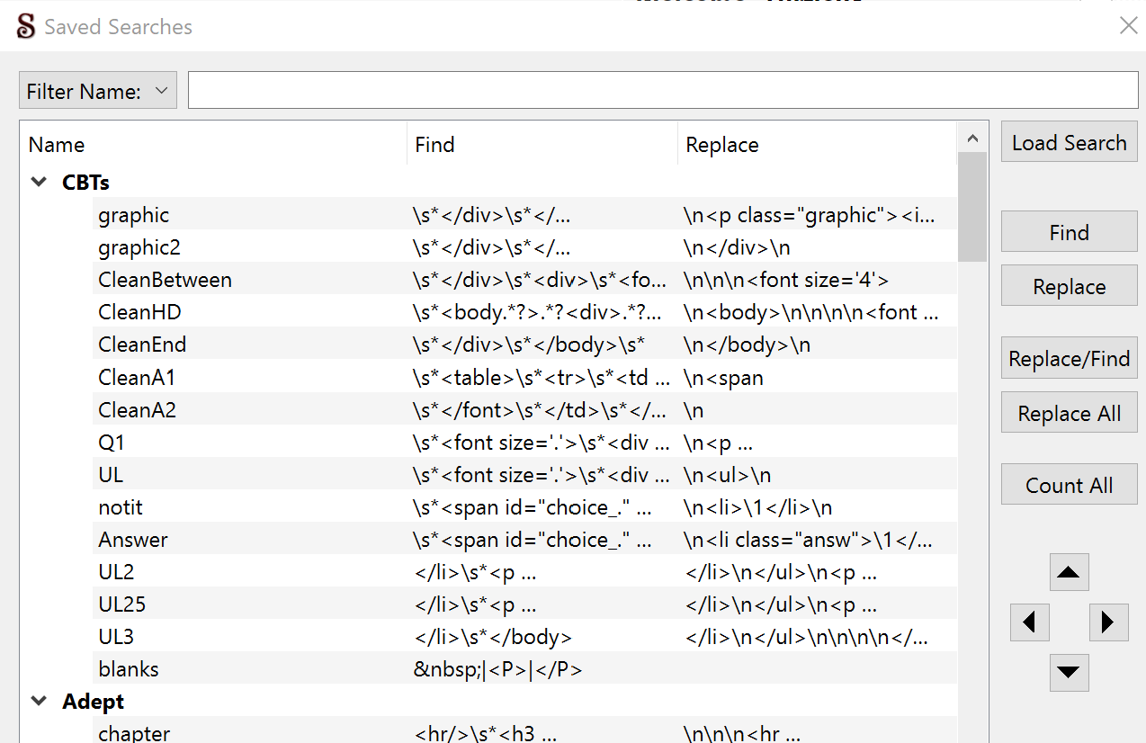Then when you want to run one, just highlight the title of the group - or even an individual search within the group to run that particular portion. The link above has all the details...its to the Sigil User Guide and has a section on Saved Searches. Attached is one of the groups of regex's I use: |