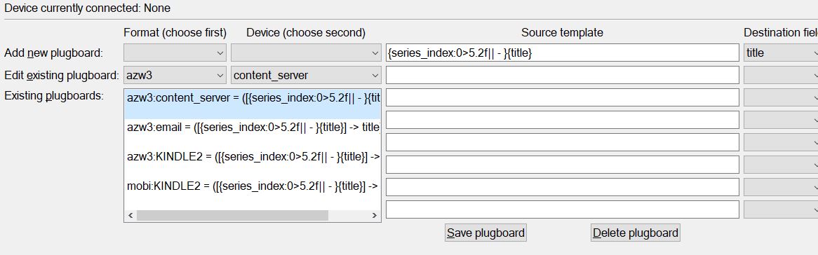 I read the instructions here (https://manual.calibre-ebook.com/template_lang.html) but they just flew over my head. I understand that this is the code I require, [Quote] (Suppose you wanted to ensure that the series_index is always formatted as three digits with leading zeros. This would do the trick:{series_index:0>3s} - Three digits with leading zeros [End Quote] But where do I need to put this code? In the plugboard settings, tweaks? Any help would be GREATLY appreciated. Step by step instructions would be BLISS if you have the time. Thanks in advance. |