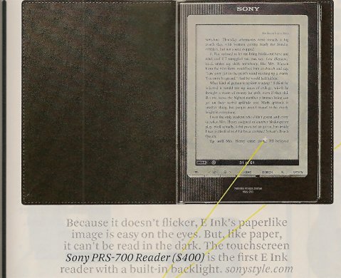 There was a mention of the Sony PRS-700 in the Jan. 2009 issue of Popular Mechanics.