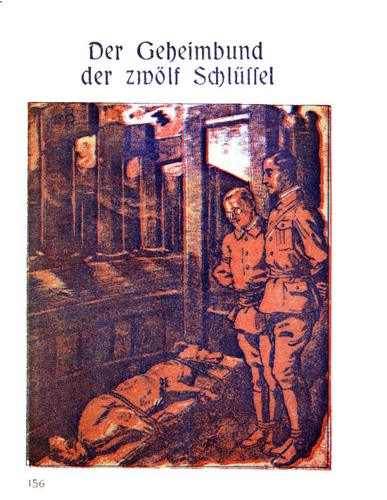 Also dieser Mr. Harry Longfield zog am zweiten April ein. Forscher, netter Kerl so weit. Nur ein Bummler. Kommt selten vor Morgengrauen heim. Im übrigen pünktlicher Zahler, ruhig, still und stets darauf bedacht, den Mädels und Henriette eine kleine Freude zu machen: Konfekt, Theaterkarten — und so weiter. Wie gesagt: netter Kerl! Aber: das dicke Ende kommt nach! — Er hat zwei mächtige Koffer in seinem Zimmer. Und als Wera, die ältere meiner abgebauten Nichten, am fünfzehnten April mittags in Longfields Anwesenheit das Zimmer aufräumte, da hatte der Chikagoer die Schlüssel des einen Koffers stecken lassen. Mädels sind neugierig. Also Wera öffnet das Kofferungetüm und findet darin nichts als einen riesigen Schlüssel aus Pappe, aus zwei Teilen bestehend … Riesig — eben eine Schlüsselattrappe, mit hellgrauem Papier beklebt, unterhalb des Bartes zwei Löcher … Und unten der Schlüsselgriff nur halb, zwei gebogene Röhren, die mit Leinwand beweglich an das Hauptstück angeklebt sind, — beide Teile der Attrappe etwa anderthalb Meter lang und das Mittelstück mit einem Durchmesser von gut fünfzig Zentimeter. Die Schlüssel — und der Schlüssel des Rätsels Wera von einer unbegreiflichen Ruhe … Der Amtsrichter hat ihr schon vorhin auf der Diele erklärt: »Sie scheinen hinreichend verdächtig, den Unbekannten, der gestern nachmittag auf dem Landwege zwischen Sellin und Sellinhof tot aufgefunden wurde, durch einen Hieb mit einem Handbeil getötet zu haben …« Wera hatte erwidert: »Ich bin unschuldig …!« — Kein Wort weiter … Dann begann das Verhör, nachdem Harst sich unter dem Zwang dieser bedrohlichen Umstände dem Amtsrichter zu erkennen gegeben hatte, worauf wir höflich gebeten wurden, der Vernehmung beizuwohnen. This work is assumed to be in the Life+70 public domain OR the copyright holder has given specific permission for distribution. Copyright laws differ throughout the world, and it may still be under copyright in some countries. Before downloading, please check your country's copyright laws. If the book is under copyright in your country, do not download or redistribute this work.
