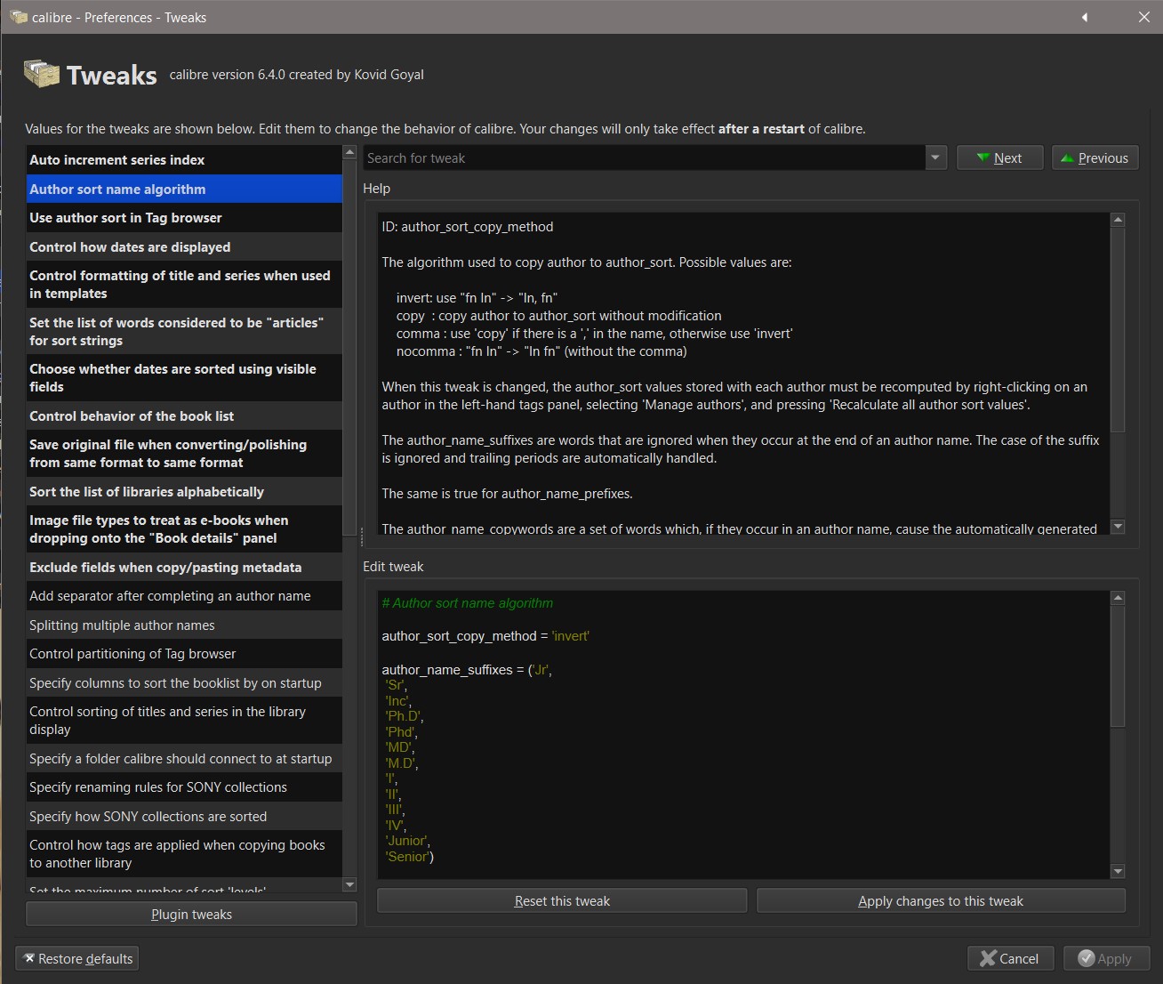 (It also has checks that can find thoe, simply select all (the results) and apply the fix. The las is a way to override specific authors: In the Tag browser: Authors: right click, Manage Authors. This allows adjustment for when the typical (tweaks) can't handle a condition. |