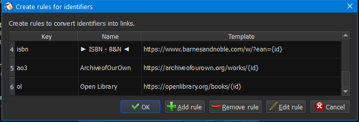 I have a custom identifier with https://openlibrary.org/books/{id} as a rule.