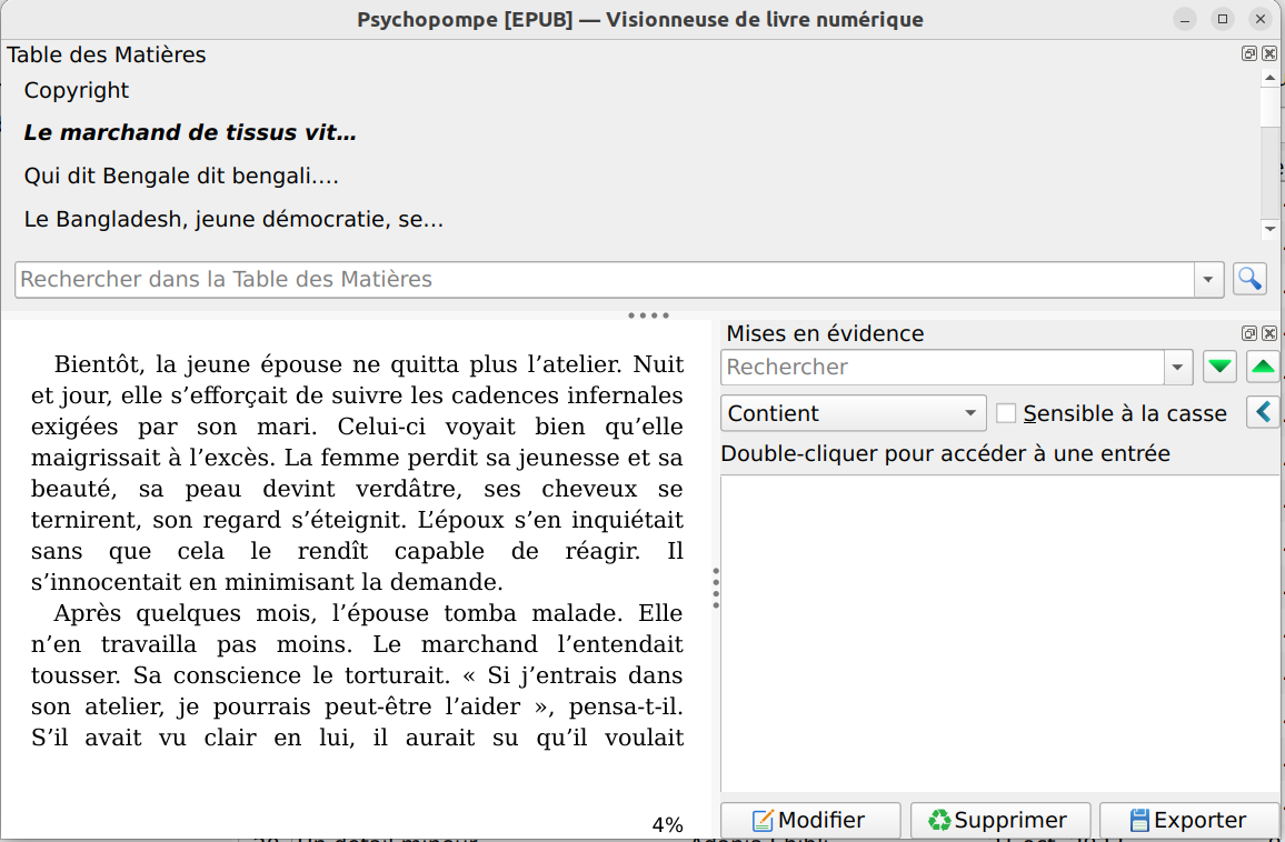 "Vous pouvez parcourir toutes les mises en évidence de votre bibliothèque calibre en cliquant avec le bouton droit sur le bouton Voir et en choisissant Parcourir les annotations." Les évidences napparaissent pas. On ne peut que faire une recherche à partir d'un mot... "Enfin, si vous utilisez le Serveur de contenu calibre Content dans le visionneuse du navigateur" Impossible de trouver ce "serveur de contenu".. |