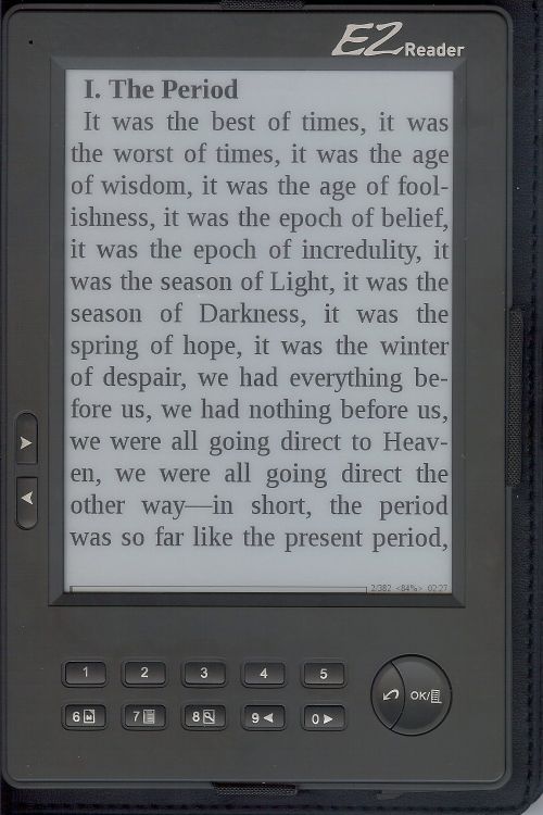 For MOBI there are only 3 font sizes and only 3 font choices. The first two attachments are 100 ppi scans of MOBI on the EZ Reader, medium and large. These are low res scans, so they are fuzzier than the actual screen. Some of the other formats allow user provided fonts and have 5 font sizes. The 3rd and 4th attachments are large and extra large for a FB2 ebook. With the latest Hanlin firmware the same display software is used for RTF. I don't have scans of PDF, but it does not reflow but rather zooms in landscape mode. The same is true of some other formats (e.g. ePub).