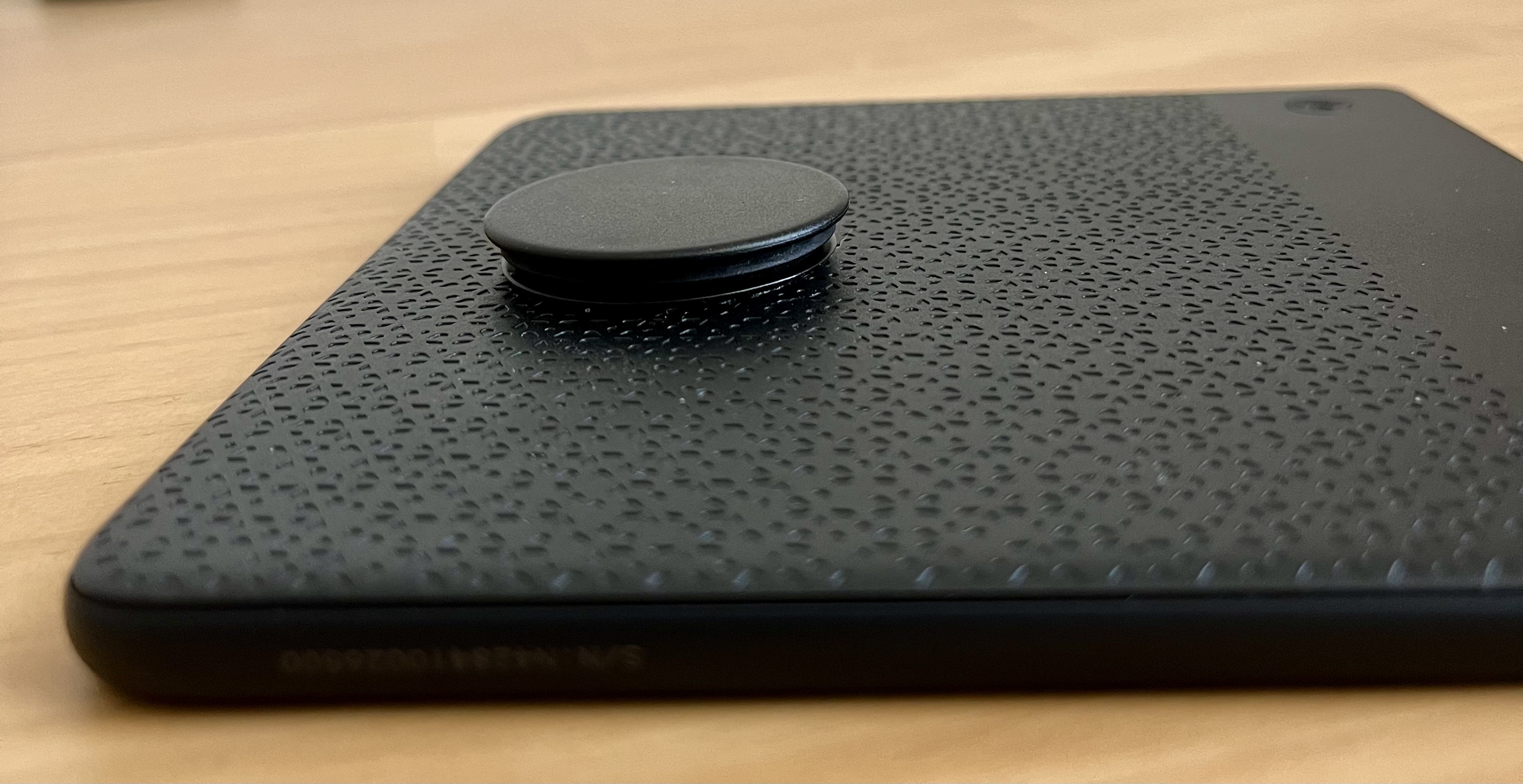 I don’t like the idea of a cover, because it would add weight. With the popsocket, it’s like I wasn’t even holding the device. I swipe pages with my thumb. For me, it’s very comfortable in any position I read. |
