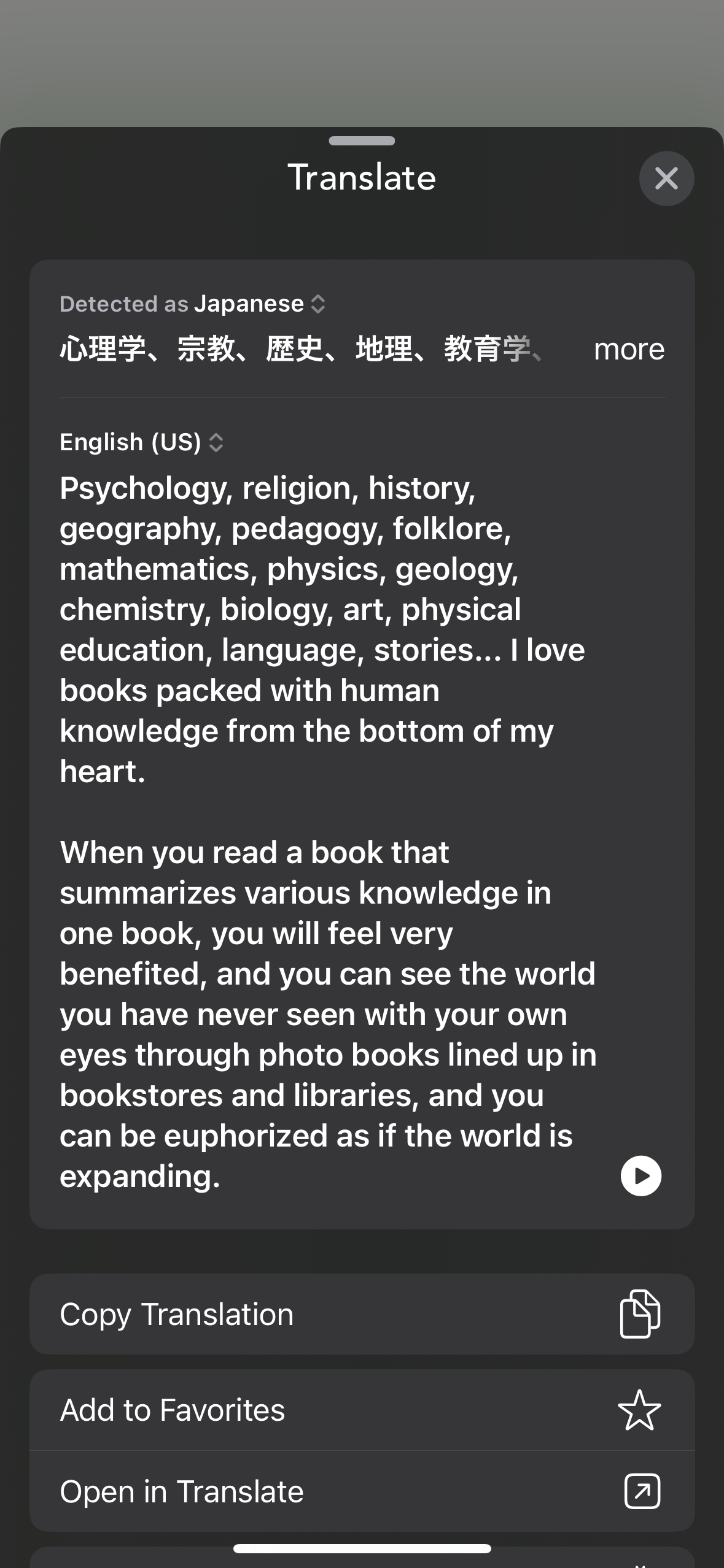 Last week Kobo updated their iOS and iPadOS app to Version 10.15.2. They’ve added support for Apple’s built in translator. You can now select text and translate, for example, English to Spanish or Japanese to English. It should prove quite handy for language study. Here are some screenshots.