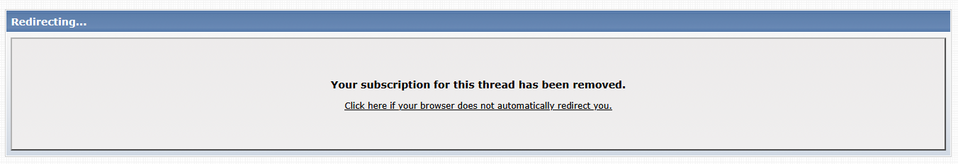 Dear xxxxxxx, You are subscribed to the thread "Library Management: various questions not worth their own thread" by ownedbycats, there have been 1 post(s) to this thread, the last poster was zzzzzzzzz. https://www.mobileread.com/forums/sh...d.php?t=355273 These following posts were made to the thread: ************ https://www.mobileread.com/forums/showthread.php? ------- SNIP---- Unsubscription information: To unsubscribe from this thread, please visit this page: https://www.mobileread.com/forums/su...cbe7137f284667 Anytime I click the link I get this error: Message Invalid Redirect URL (https://mail.yahoo.com/) This applies to any message from different topics. If I click the same link a second time I get this error: Message An invalid threadid or forumid was specified. The threadID and forumID should not be invalid they are what the messages supplies. It occurs wheather I am logged into mobieread or not. Same results. |