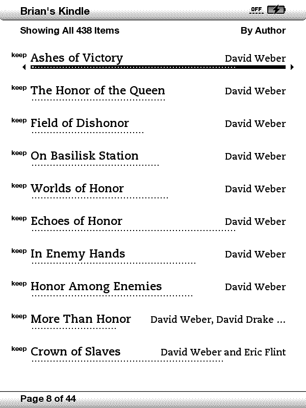 I actually have these books on my K1, I'll try putting them on K2 to see what happens. I have already fixed the metadata on them so it may not work but I'll give it a try. Edit: I transfered the books via USB from K1 to K2 and I didn't get any "keep" flags. This may be a "call Amazon" question. Last edited by daffy4u; 03-15-2009 at 06:14 PM. |