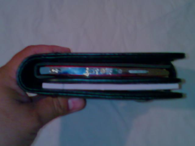when i took out the daily planner part, I slid the back part of the sony cover into the center divider (just like the planner was inserted). When I am travelling, there is a spandex strap that I can place over the reader to kinda secure it. (it's not like I am running a marathon people, and it is a piece of electonic so I am not going to be playing frisbee with it) ![]() the front section has a place for a business card or id card and a small 5" x 6" section to place documents (albeit small documents) there. next to the divider and not rubbing against the reader is a little spandex loop for a pen (Cross pen size) then i flip the center divider (which the sony reader is attached to) and there is another slot for a business card and holder for a small piece of paper. then on the back side of the case is a place for a small tablet of paper (which comes with the daily planner). The only cons are that the case is not zippered but sort of strapped in like the cases Amazon is offering for the 505's, but again, I use the spandex strap to hold it in. and that you are now carrying something comparable to three 505's stacked on top of each other (8.5" x 5.5" and 1.5" thick). but it works. and now i realize that i can't use the new amazon covers with this because the reader is secured with loops on the back side of the cover and i need that back side to be free so i can insert it in the plastic divider. Last edited by willanaya; 05-14-2009 at 11:57 PM. |