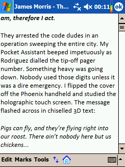 With this week's release of the first beta of Windows Vista, a guy named ZoRoNaX quickly put up a zip file with the six new typefaces that were commissioned for Longhorn Vista. I am sure there is some kind of copyright violation by offering those fonts for download, so it's only a matter of time before the zip will disappear. Of course I went ahead and installed them on my handheld ![]() See attached screenshots displaying each font when used with iSilo. The fonts can also be installed on Windows XP AND Mac systems. Calibri, Cambria, Candara, Consolas, Constantia and Corbel - according to Poynter Online, the new ClearType Font Collection incorporates improved ClearType and OpenType technologies, and a boatload of research, to improve the structure and the clarity of the letter forms. Basically, that means a story will be easier to read because the letters and words won't be as soft and mushy looking.